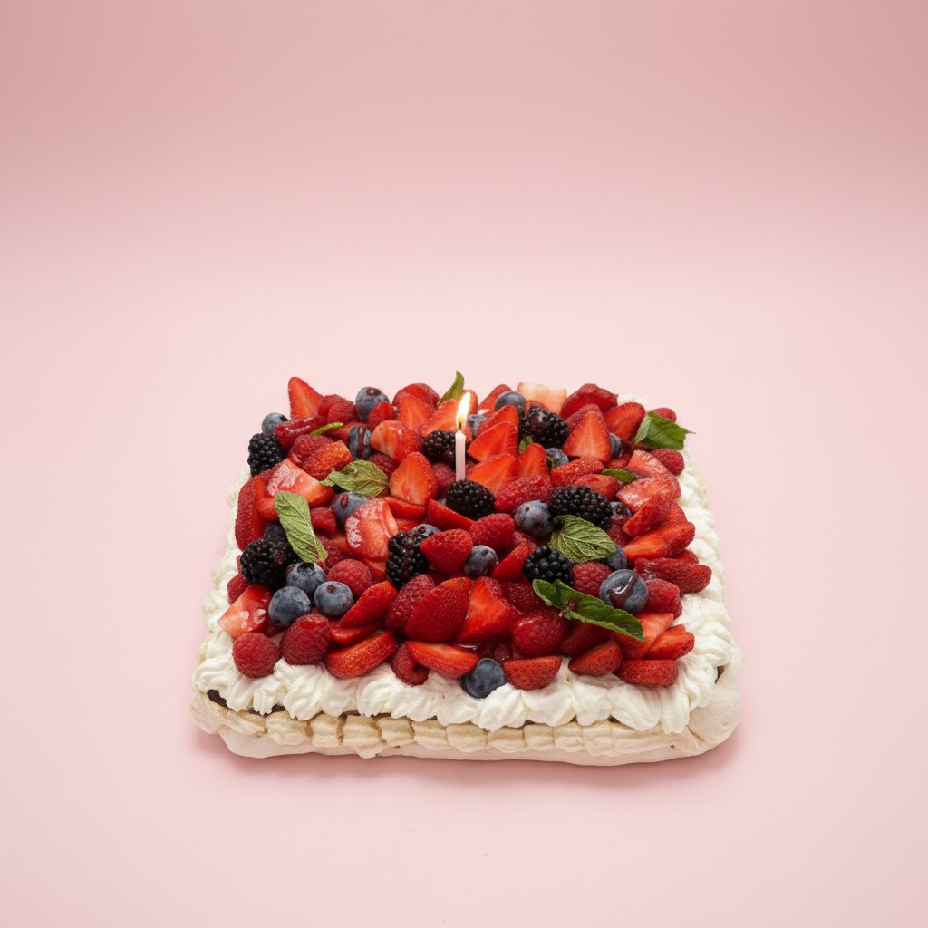 Gluten Free delicate meringue base, rich dulce de leche or Nutella, freshly whipped cream, topped with strawberries or mixed berries.